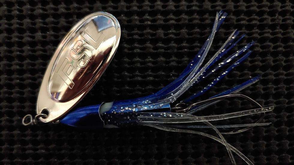 Back by popular demand! These are slightly heavier spinners sporting beautiful contrasting colors and a hoochie for that extra attraction factor. Made from our own components, these utilize a brass torpedo body inside one of our high quality hoochies protected by a brass cap and a .032 thumping brass blade. Want a color combo you don't see? Just Ask!